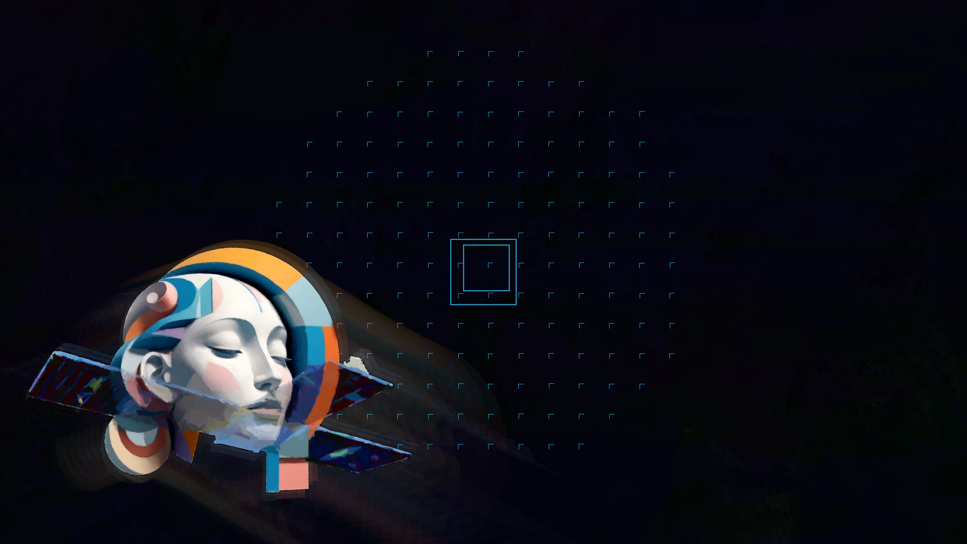 In Act I (Deep Blue, 1997), the engine renders a rigid Cartesian grid in deep cyan — a cooler planet, a rule-bound mind. By Act IV (Gemini, 2023), the grid has dissolved into a breathing, star-like nebula of organic particles against shifting reds and oranges — a fevered planet, a multimodal consciousness. The piece is accompanied by an original score composed by the artist, whose lyrics chant the specific dates of each technological milestone.